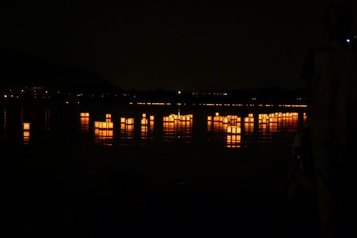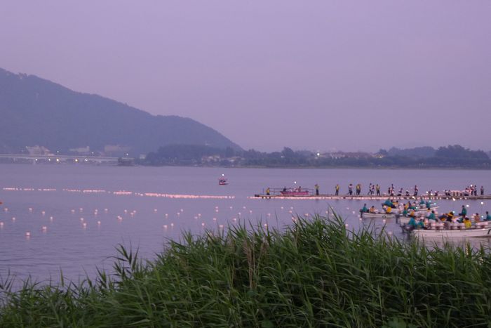 山梨県富士河口湖で行われた灯篭流しを見に行きました!