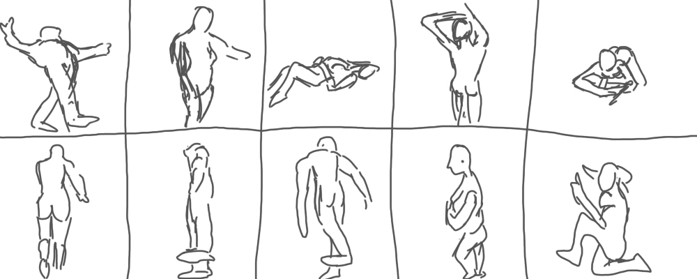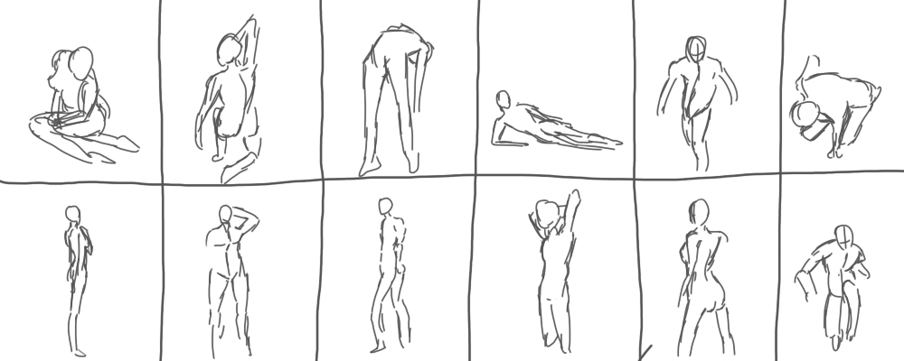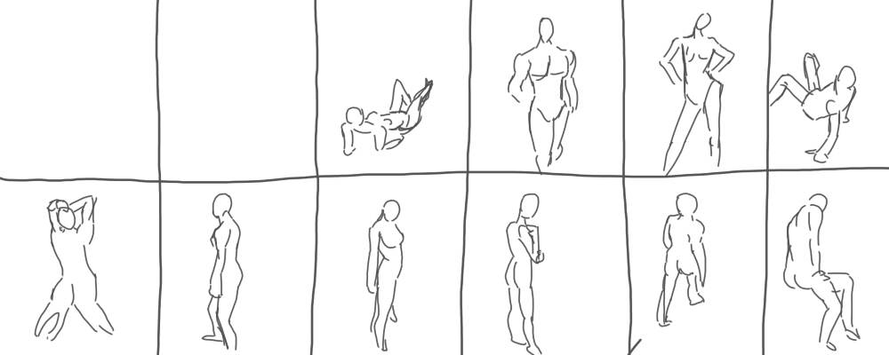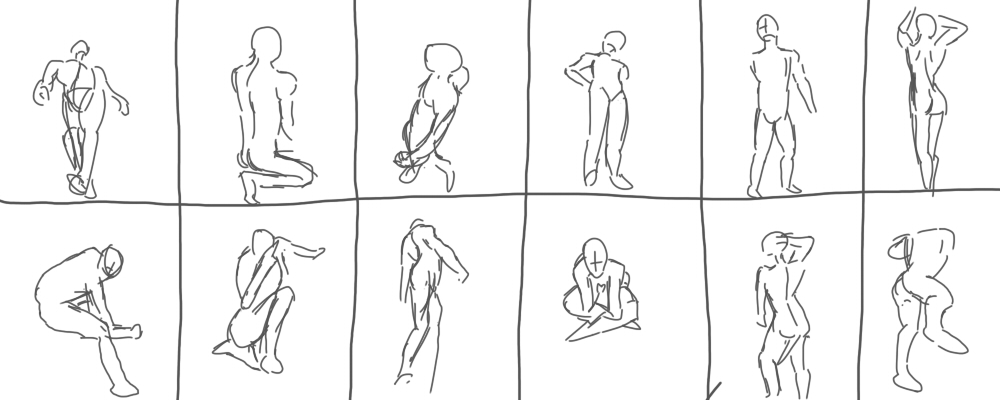 次々に表示される人体モデルを30秒で描いてみる、という絵の練習法だそうです。