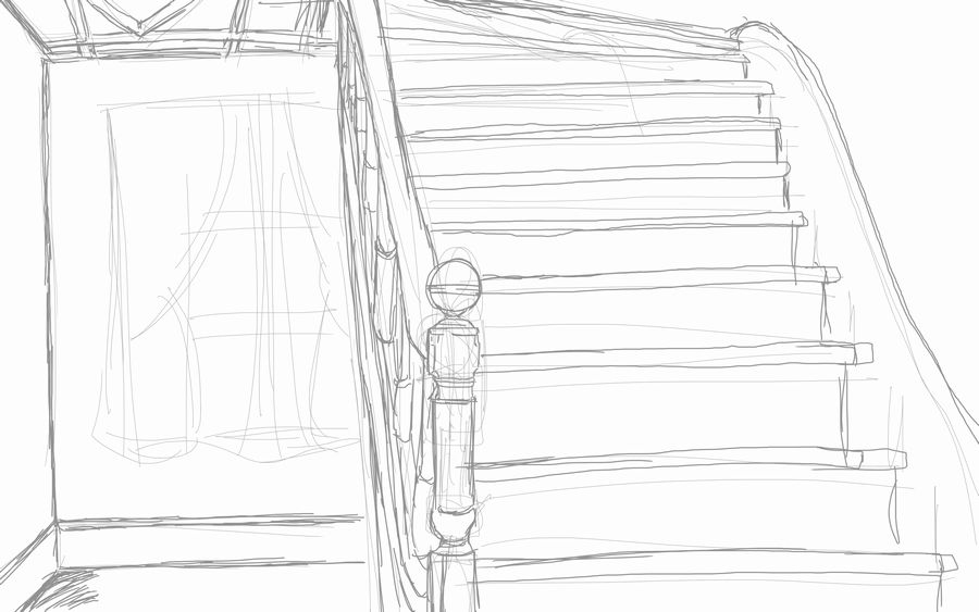 とある洋館に行ったときに撮った、階段部屋を参考にしました。